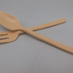 This bendable utensil set (spoon & fork) is made in Japan. Material is high quality polymer. The set can stand the temperature up to 200 degree C.
