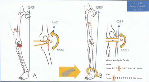 A proper designed orthotics (OA) insole can help to correct our walking posture to reduce burden of our knee. Hence, the symptom will be released and degeneration will be delayed.